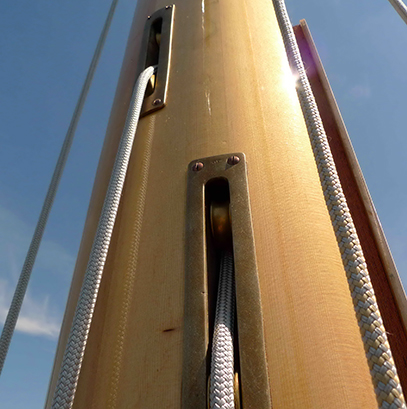 Durch die Vintagegruppe der 8er-Klasse initiiert entstand vor vier Jahren ein neuer, moderner Holzmast, welcher im Gewicht identisch mit dem Alurigg ist aber durch eine viel größere Steifigkeit hervortritt.